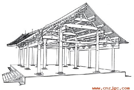 宋《营造法式》殿堂大木作制度示意图