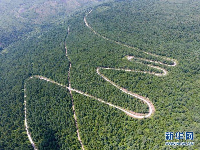 这是阿尔山市白狼镇的一条盘山路(7月2日无人机航拍) 新华社记者 刘磊摄
