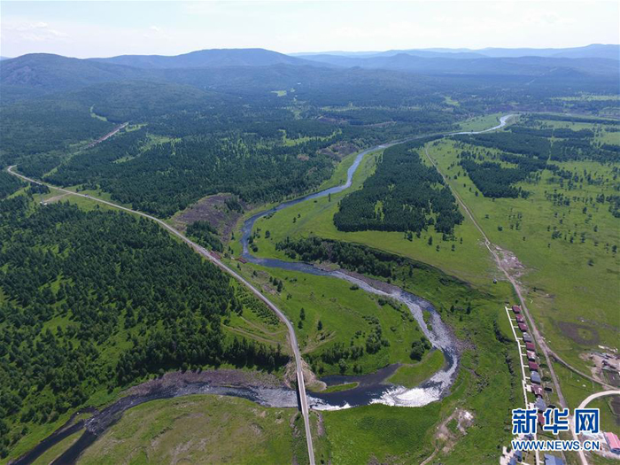 这是流经阿尔山世界地质公园的哈拉哈河(7月1日无人机航拍) 新华社记者 刘磊摄