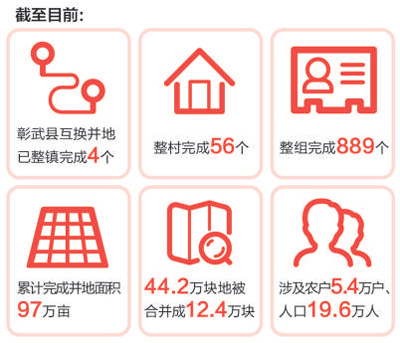 截至目前,彰武县累计完成并地面积97万亩,44.2万块地被合并成12.4万块,涉及5.4万户、19.6万人。