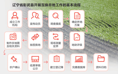 眼见为实,刘江义心里有了底。2017年11月22日,彰武县出台政策指导方案:互换并地必须严格按照中央政策精神和农村土地承包法、村民委员会组织法等法律,每个乡镇选择1到2个村试点,明确了六项原则:农户自愿、因地制宜、促进生产、依法依规、手续齐全、公平公开公正,确定了基本流程。